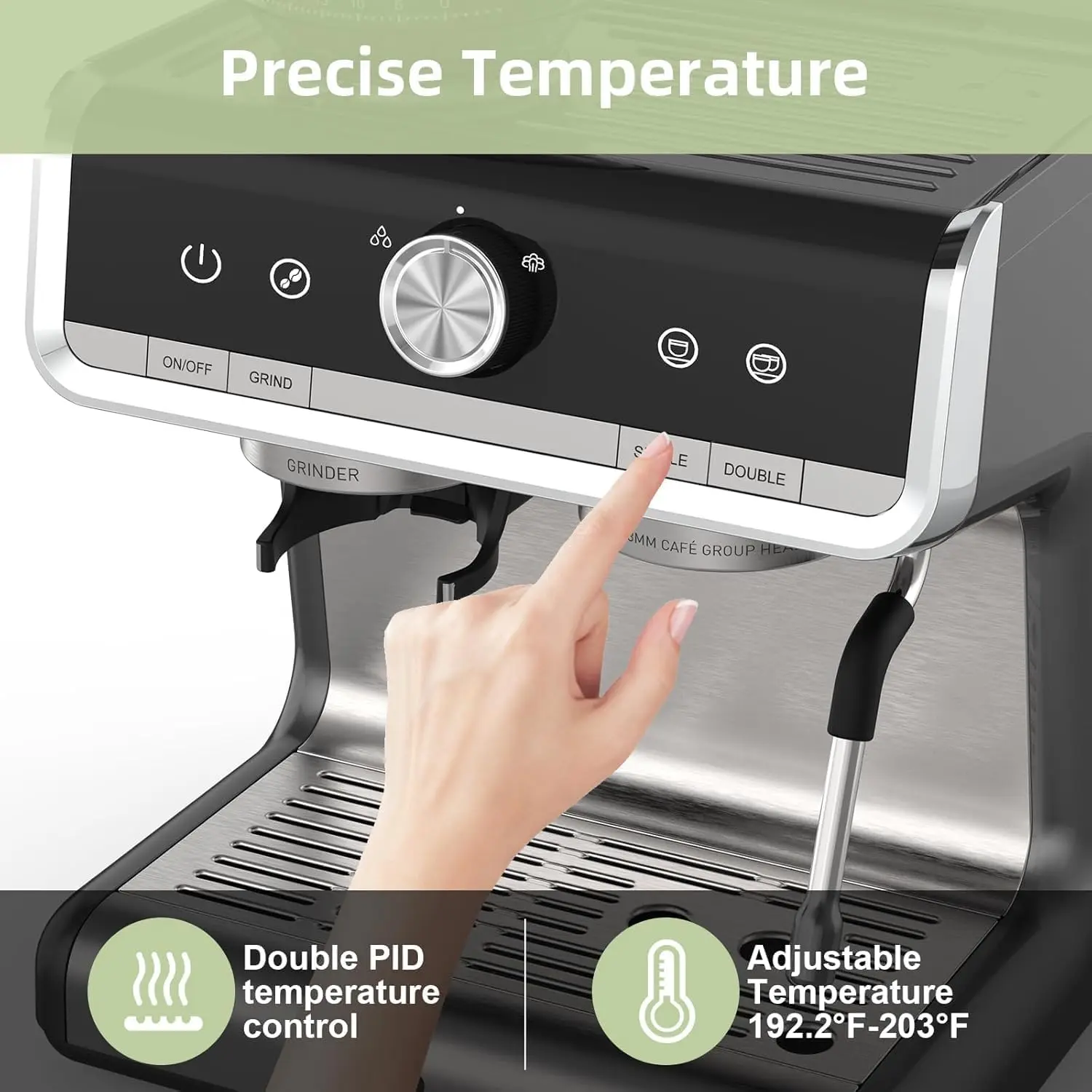- Accurate Temperature Management: The coffee maker is equipped with dual PID temperature regulation for the best coffee extraction and milk frothing. This guarantees that the temperature stays consistent at 201.2°F (±35.6°F), delivering a uniform brewing and texturing experience for a flawless cup each time.