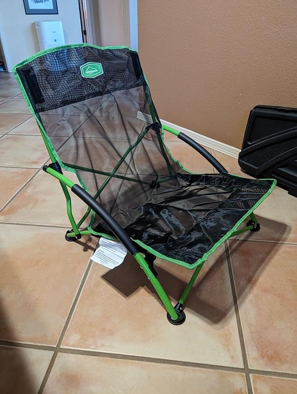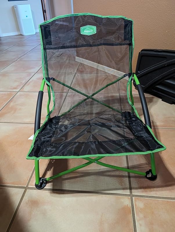I finally got a great chair for outdoor concerts. Other chairs I’ve tried are either too tall, too hard to assemble, too reclining, or all of the above. This chair sits only about 4 inches above ground (ground to seat bottom), which is well below the 12″ height limit of our favorite outdoor concert venues. No assembly is required for use — it just unfolds into a usable chair. And it sits fairly upright, not reclining too far back like other chairs I’ve tried, where you end up facing 45 degrees above the horizon. This chair fits into a carrying case that’s about 32″ long. You won’t be taking this backpacking, but great for the beach, camping, and concerts.