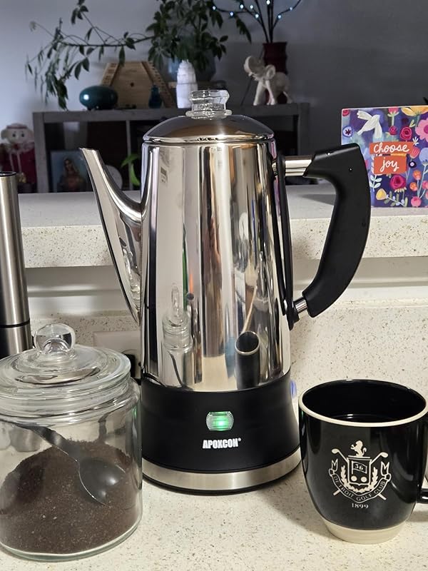 If you’re looking for a well-built, aesthetically pleasing, and high-performance coffee percolator, the APOXCON Electric Coffee Percolator is a fantastic choice. It not only revives the art of percolated coffee but does so with thoughtful modern features like cordless serving, automatic warming, and dual visual brew knobs. From its solid construction to its smooth functionality, this unit is perfect for anyone who wants to elevate their daily coffee ritual—without compromising on taste or convenience.