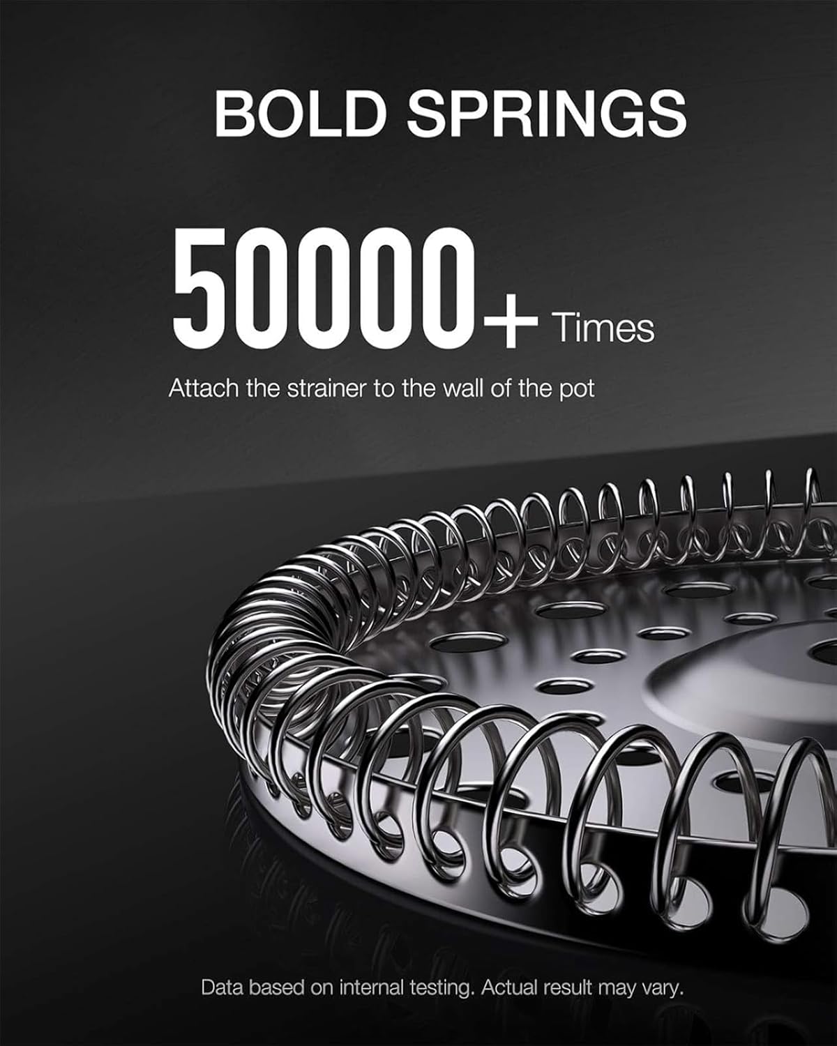 Consists of a metal mesh filter, spring disk, cross plate, and final screen, ensuring a smooth cup free from sediment.