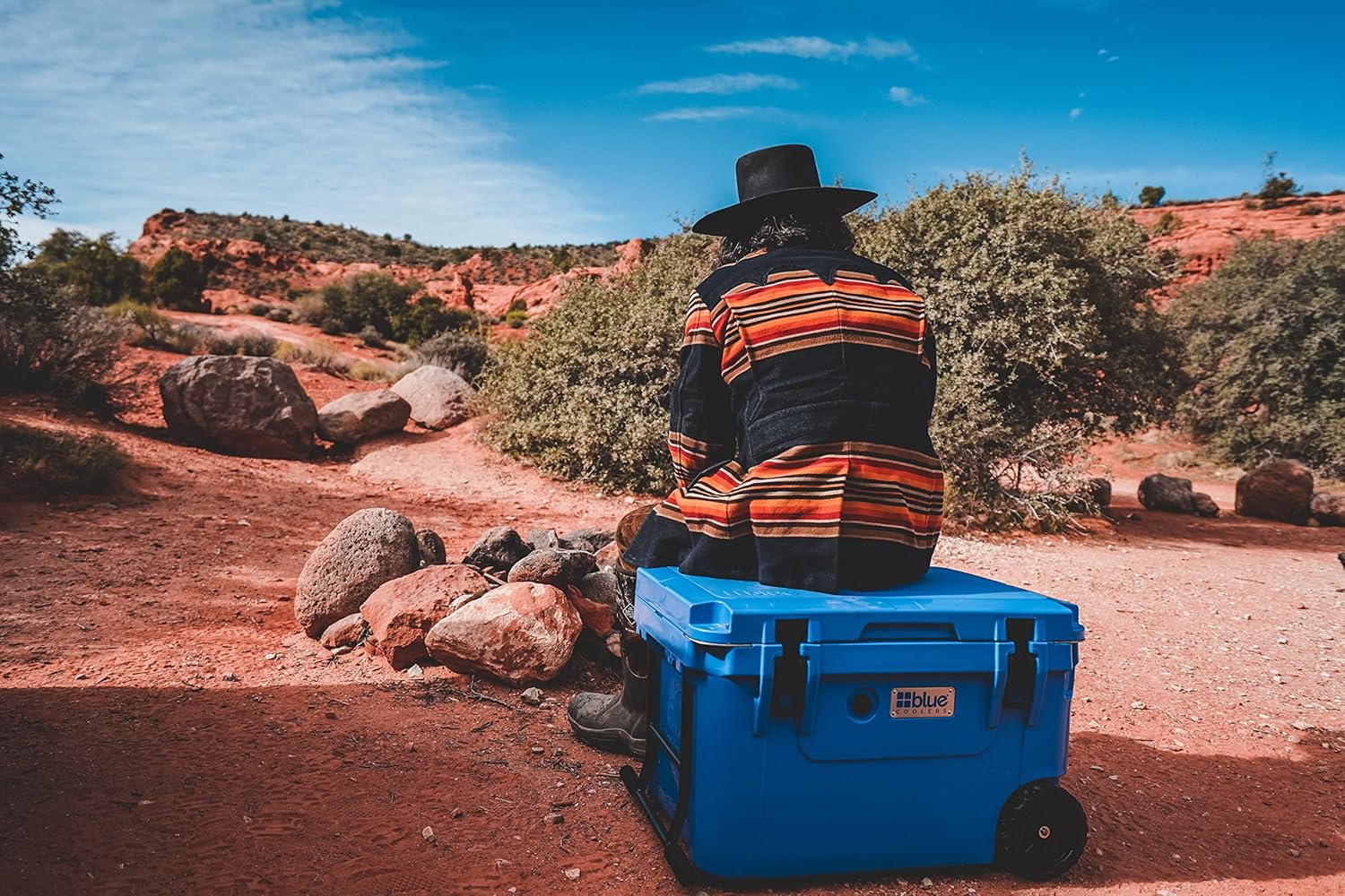 The Blue Coolers 60 Quart with wheels is a game-changer for tailgates and outdoor adventures. It holds an impressive amount of drinks and food, and the ice retention is seriously impressive—still had ice after day five. The built-in cup holders and ruler on the lid are great extra touches.