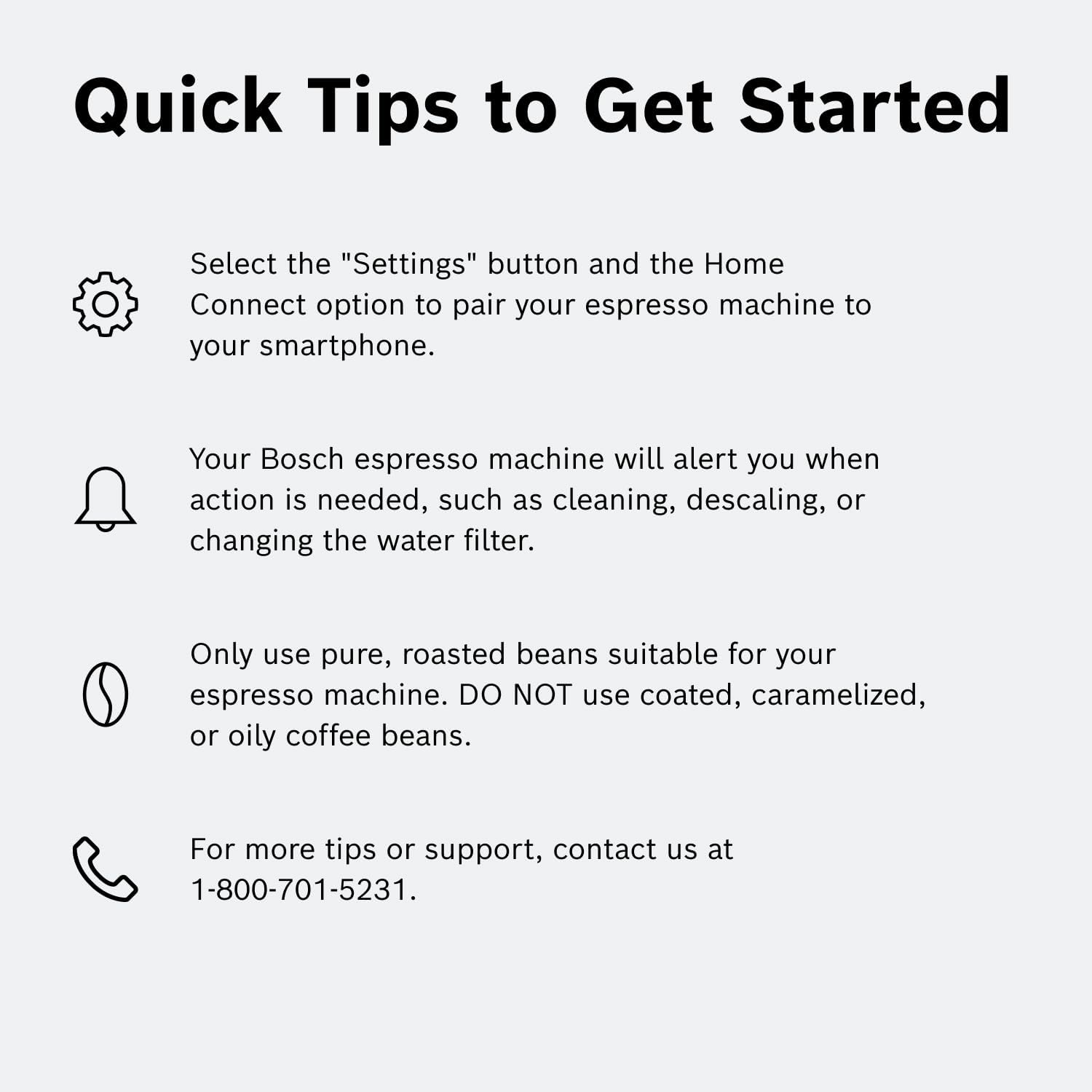 • Home Connect App: Brew remotely, explore new recipes, and get software updates for future beverages.