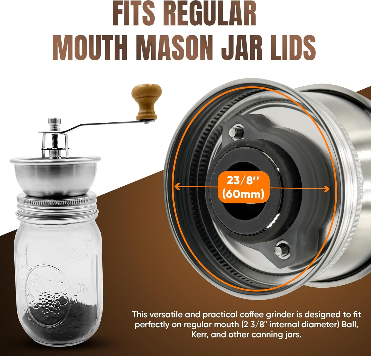 If you’re looking for a lightweight, eco‑friendly, and cost‑effective way to grind coffee beans wherever you go, this grinder lid attachment delivers big on performance in a tiny package. By transforming a mason jar into a powerful coffee grinder, it offers ultimate freshness, hands‑on control, and exceptional convenience without sacrificing quality. Its robust stainless and ceramic construction means it’s built to last — and its portability makes it a great companion whether you’re at home or exploring the outdoors. Perfect for aficionados and casual drinkers alike, this grinder is a must‑have accessory for great coffee anywhere.