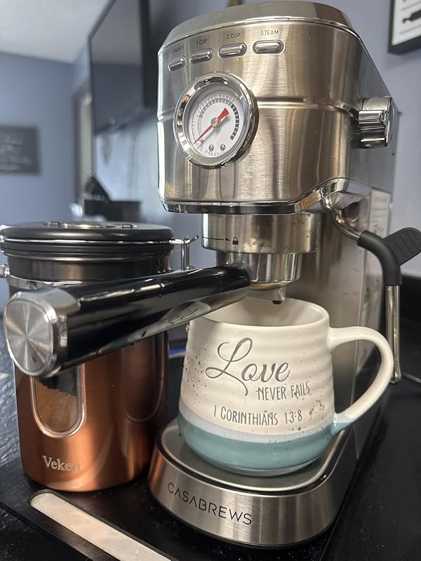 The CASABREWS espresso maker is an incredible find for anyone looking to get into home espresso brewing without spending a fortune. I was pleasantly surprised by how professional it feels despite being so compact. The 20-bar pump delivers authentic espresso with a rich crema, and the 1,350W boiler heats up quickly—perfect for busy mornings. I especially appreciate the steam wand, which froths milk beautifully for cappuccinos and lattes. It also fits nicely under my cabinets, which was a big consideration for my small kitchen space. The machine is solidly built with a stainless-steel body that feels durable and looks high-end. The removable water tank is easy to refill and clean, and the included tools make brewing straightforward even for first-timers. For the price, the quality and design are unmatched in this category. It’s a perfect balance of performance, style, and simplicity.