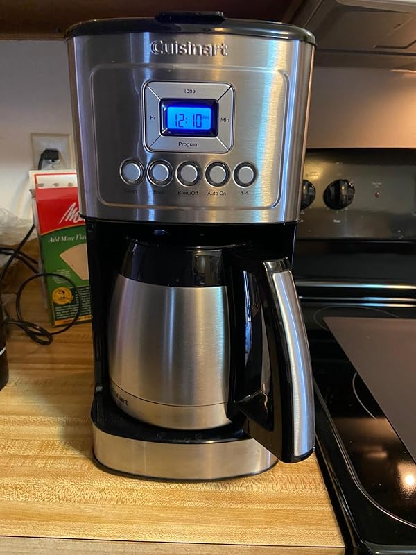 I recently upgraded to the Cuisinart Stainless Steel Coffee Maker, 12-Cup Thermal, Silver, and it has completely transformed my morning routine. This coffee maker is a perfect blend of style, functionality, and quality, making it an outstanding addition to any kitchen.Sleek and Stylish Design: The stainless steel finish is not only elegant but also adds a modern touch to my kitchen. It looks fantastic on the countertop and complements my other appliances perfectly. The design is both sleek and practical, with intuitive controls that are easy to navigate.Thermal Carafe Excellence: The 12-cup thermal carafe is a game-changer. It keeps my coffee hot for hours without compromising on flavor. I love that I can brew a full pot in the morning and enjoy hot, fresh coffee throughout the day. The carafe is also well-designed, with a comfortable handle and a no-drip spout that makes pouring a breeze.Brew Strength Control: One of my favorite features is the brew strength control. Whether I’m in the mood for a bold, strong cup or a milder brew, this coffee maker delivers exactly what I want. The customizable settings ensure that every pot of coffee is brewed to perfection.Programmable Convenience: The programmable feature is incredibly convenient. I can set the coffee maker to start brewing before I wake up, so I’m greeted with the aroma of freshly brewed coffee as soon as I step into the kitchen. The auto-shutoff feature adds an extra layer of safety and peace of mind.Easy to Clean: Cleaning this coffee maker is a breeze. The removable parts are dishwasher safe, and the stainless steel exterior wipes clean easily. The self-clean function is a fantastic addition, making maintenance simple and hassle-free.Consistent Performance: Every pot of coffee I’ve brewed with this machine has been consistently excellent. The coffee maker heats the water to the perfect temperature, ensuring optimal extraction and rich, flavorful coffee every time.In summary, the Cuisinart Stainless Steel Coffee Maker, 12-Cup Thermal, Silver is an exceptional product that combines style, functionality, and quality. It has made my mornings more enjoyable and my coffee routine more efficient. I highly recommend it to anyone looking for a reliable and stylish coffee maker that delivers delicious coffee every time.