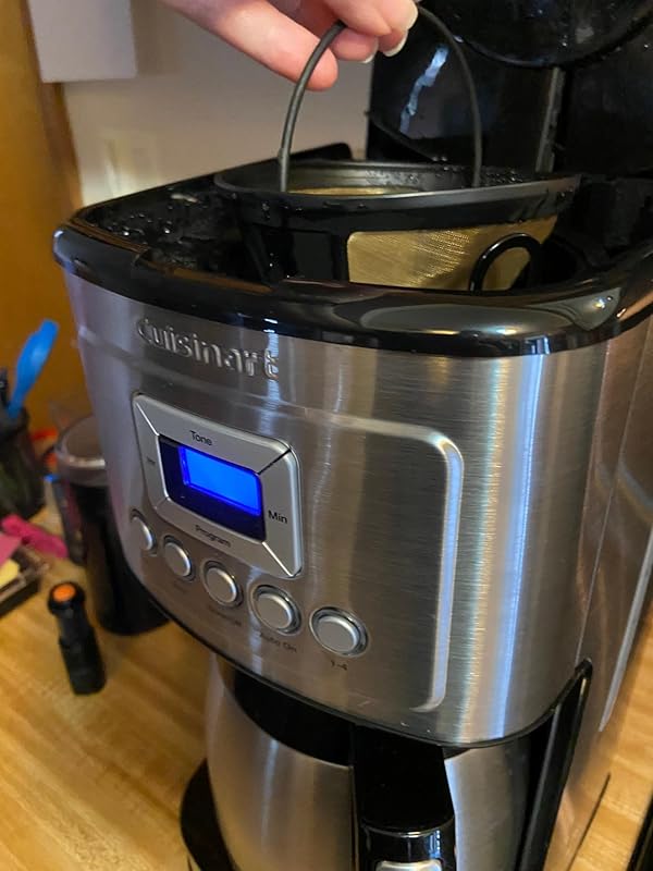 Update: The first one I bought lasted about 19 months. The price has increased almost 50% since I bought that one. When it died I tried a few other models that are less expensive. After a day or a week I returned those and ultimately bought another one of these. I’ve had my second one about 11 months now. I will likely never buy anything else. Best coffee I’ve ever been able to make at home. It used to be if you bought something from Cuisinart you could expect to still have it in five years. I wish that was still the case, but if I’m being completely honest I would buy a new one of these every year if I have to.I looked at every model of thermal carafe coffee maker and read a lot of reviews before choosing this one.This is, by far, the hottest coffee I have ever gotten from a home coffee maker. For me, this is a huge selling point.The thermal carafe keeps the coffee hot enough to enjoy without microwaving for at least 4 hours. Even after 6 or 7 hours the coffee is still warm and tasty. Because it does not use a warming plate to keep the coffee hot, the last drop of coffee tastes as good as the first. I will never go back to a glass caraf. I like the flavor of my coffee better than I have with any other coffee maker I’ve ever owned.The carafe is large. It holds almost 2 liters if you fill it to the 12 cup mark.The pour spout is designed specifically so It doesn’t dribble all over the place when I pour.It makes the coffee pretty quickly. Speed depends on the settings you use and, obviously, how much coffee you’re making. A full pot without the bold setting is read in about 11 or 12 minutes.It is completely programmable so you can setup the coffee to be ready at whatever time you’d like. It also has a “1-4” button for if you’re making 1 to 4 cups of coffee, and a “bold” button if you like stronger coffee. Those two buttons have a similar function. They slow the water flow over the grinds so you get the full flavor in a small pot, or a bolder flavor in any pot.A note about pouring because I’ve seen some reviewers that didn’t like how the pot pours. I don’t use the pot to fill the reservoir with water. I did that the first time and it pours way too slowly. That was aggravating. That may be why others complained. So I use a plastic pitcher for filling the reservoir. It appears that the top to the pot is designed to control the flow rate when pouring. I see this as a positive. When I’m filling my coffee cup I’m never wishing it would pour faster. I’m just glad coffee isn’t getting all over the counter, the floor, or me.I noticed some reviewers said the buttons stopped working after a few months or a year. I will say that it doesn’t take much force at all to get a response from whatever button you push. Because of those reviews I make a point of not using much force when I hit “Brew” or whatever button I’m pushing. If you poke them hard over and over, I could see them not working anymore after awhile.This coffee maker looks nice in my kitchen. If you have stainless steel appliances it will match. It takes up a very reasonable amount of space on my counter. The measurement lines are on the right side in the middle; however you can pour the water into the reservoir from either side. The reservoir is the whole back of the unit and is accepts water on either the left of the right side.The filter basket is cone shaped. It comes with a gold screen reusable filter insert. I still use a paper filter in that as well because I don’t like any sediment in my coffee. The paper cone filters cost a little more than standard filters but not so much that it is deal-breaker for me. A few extra dollars every 3 or 4 months.You have the option to use a charcoal water filter, but if you never use one it doesn’t change how to unit performs. The charcoal filter’s purpose is to filter things like the chloriine flavor out of your water. I use it.Some reviewers complained that the instructions are lacking in detail. Maybe the manufacturer has updated them since then. For the most part the setup is all pretty logical. The one thing I found difficult to figure out and not explained in the instructions was getting the charcoal filter into the filter holder. Turns out it is apparently so easy it looks hard. I included a few pics. On the stem portion of the charcoal filter holder is the word “open” with an arrow pointing downward. Right below that on the base is a little notch that sticks up. Just gently pull on the little notch and the front of the base flips open. The back left corner of the water reservoir has a slot cutout in the bottom to hold the base of the charcoal water filter setup. You just gently set it down in there. You don’t have to force it. And it stays in place. The last pic is of the cutout in the bottom of the water reservoir. Other than that setup was really easy. The filter basket only fits in one way. It’s a no-brainer to see where the water goes. The instructions tell you how to use all the buttons and features.There is a ready tone that beeps 5 times when the coffee is finished brewing. It’s pretty loud. If you don’t like that, you just press the “Tone” button near the clock face and the ready tone is off.It comes with one charcoal water filter, several cone shaped paper coffee filters, and a coffee scoop. Amazon sells the charcoal filters and the paper cone filters for very reasonable prices.I’ve been using this coffee maker since the day after Christmas 2019 and I have no complaints. I will update this review if anything changes. I’ve had a Bunn, and several models of Hamilton Beach over the course of 20 years. So far, this is the best coffee maker I’ve ever owned.