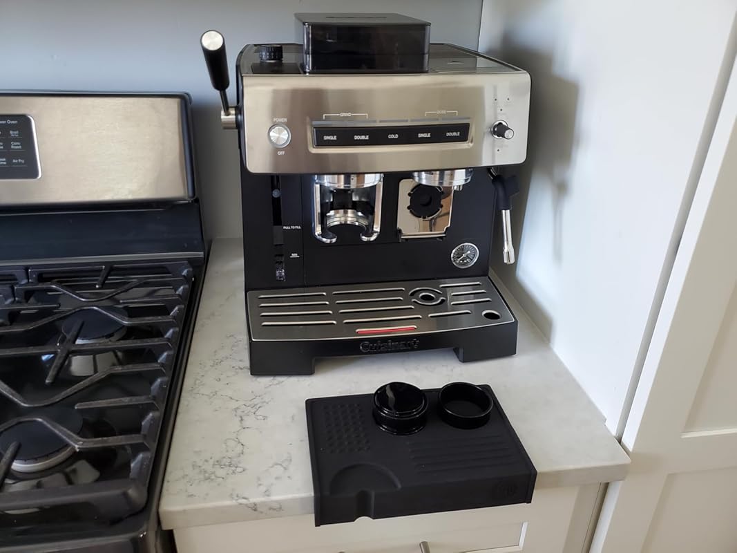 I’m normally an I hate mornings, get me my coffee quick Keurig kind of guy. Occasionally, I’ll get a bit more serious and pull out my Timemore Chestnut grinder and do a nice pour over or use my moka pot. I’m almost done renovating our kitchen and this Cuisinart Espresso Bar fits perfectly in the corner between our stove and pantry cabinet.This machine makes having a perfect espresso almost as easy as using the Keurig. Just place the portafilter with either the single or double shot basket into the grinding cradle with the dosing guide on top. Press the single or double button and wait for the appropriate amount of coffee to drop in. The only thing that takes any extra effort is removing the dosing guide and getting the coffee flattened enough to tamp it. Once you get that done, just place the tamping puck on top of the portafilter, place it back into the cradle, and pull the lever down to complete the tamping. Move the portafilter under the brew head and press the appropriate dose size button. If you’d like more water, just place the cup under the steam wand and move the selector to hot water instead of steam. Or use the steam wand to froth your favorite type of milk. It takes a bit of practice with the settings to get it dialed into your preferences.The machine has a 1/2-pound bean storage and conical burr grinder on top. You can choose from 16 grind sizes. The water reservoir can be filled from the top or pulled out for easy filling from filtered water. There is a charcoal filter in the water reservoir. The top has a cup warming spot on the left. You can choose from single or double settings and even reprogram the buttons to add more water for each. The grinder is in a small basket that is removable for easy cleaning and there is a descale setting as well. The baskets and dosing guide can be stored under the machine in a basket behind the tray. I would not put the puck in it as it got a bit stuck when I did. One thing I have noticed is that if there is a bit too much coffee in the basket, you will have trouble turning the portafilter in the brew head. It will become almost impossible and feel as though you’re going to break it. The easy way to avoid that is to pay attention to the tamping puck. If it bottoms out on the basket when you’re tamping the coffee, it will turn in the brew head.Overall, this is a fantastic machine and although it’s fairly expensive, it is not too expensive for what you’re getting. It feels like a commercial appliance and exudes quality. It weighs 35 lbs. At the moment, the Amazon price is about $50 cheaper as compared to the Cuisinart website.I cannot recommend this espresso maker more. If you love coffee and are willing to pay for it, get this machine. If you spend a lot of money at coffee shops and it’s about coffee and not the social scene, get this machine.