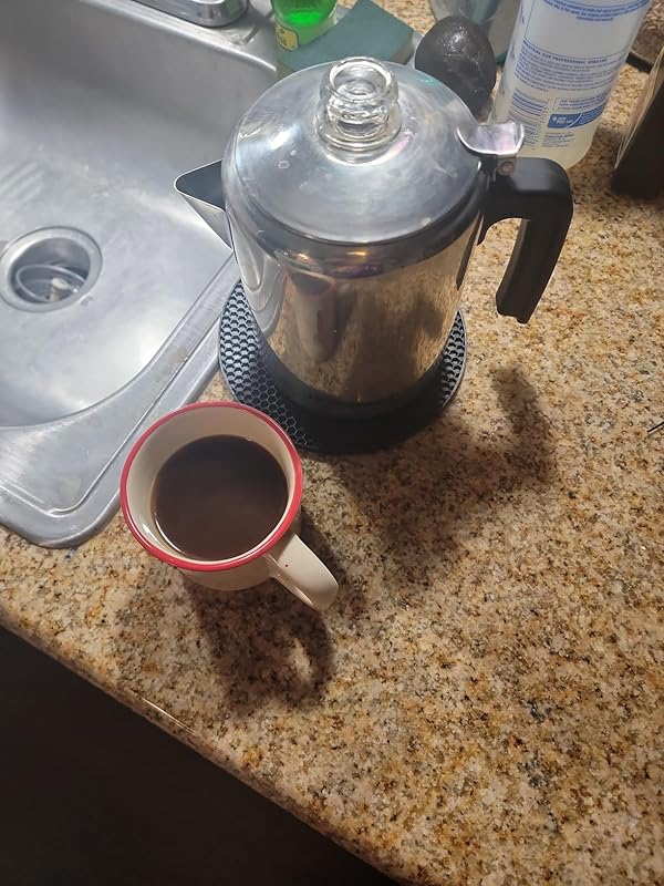Let me tell you—this isn’t just a coffee percolator. This is a time machine back to when coffee had backbone and flavor strong enough to make you want to chop wood before breakfast.The moment I unpacked it, I could see the quality—solid stainless steel, perfect finish, no flimsy parts. This thing looked like it could survive a fall off a mountain… and still brew you a cup at the bottom. For the price, it’s a steal. Honestly, I expected to pay double for something built this well.First morning I used it, I felt like a caffeinated conductor leading a symphony—the gentle bubble, the rhythmic perk, the rich aroma filling the kitchen. By the time it finished, I wasn’t just awake… I was alive.This percolator doesn’t just make coffee—it makes events. Power outage? Works like a champ on the gas stove. Camping trip? It turns a campfire into a five-star café. My friends now come over “just to visit,” but I know the truth… they’re here for the brew.Bottom line: Great quality. Great value. Great coffee. If coffee is your morning fuel, this percolator is your rocket engine. 🚀☕— Verified Coffee Hero