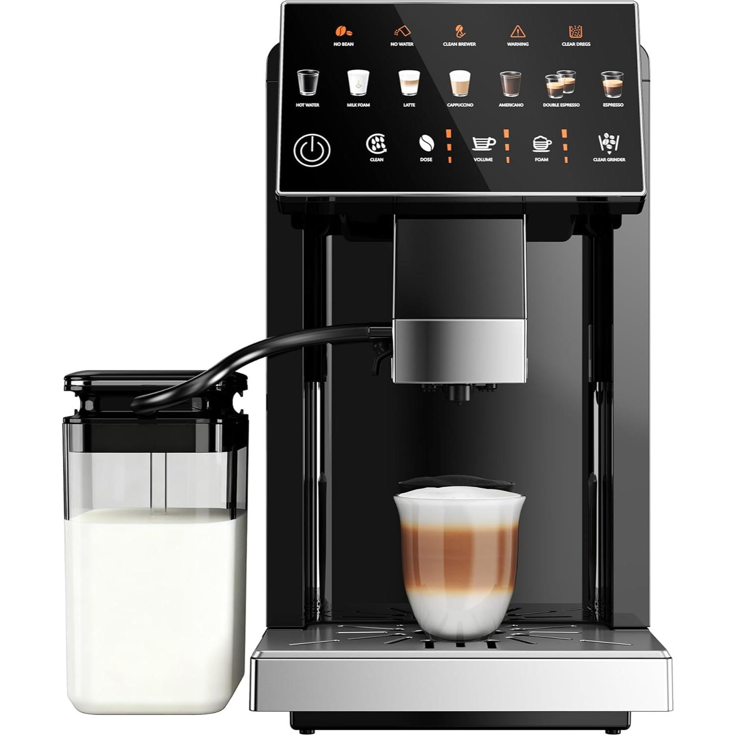 ✅ Automatic Milk Frother – Built-in system with detachable milk container creates velvety foam for lattes and cappuccinos.