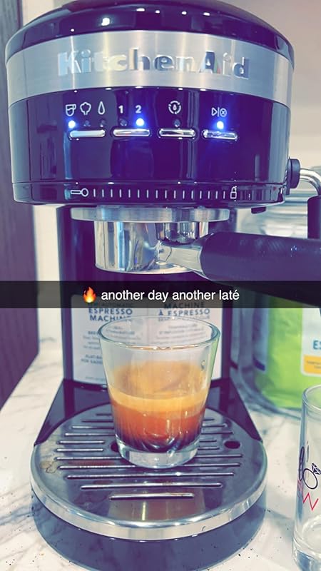 I love this Espresso Machine, I’ve had it for a couple weeks now and I’ve made MANY lattes!! My keurig machine has not been used in days I actually want to get rid of it because my drinks from my Kitchen Aid espresso machine are way better. The kitchen aid espresso machine is great quality , it’s heavy , durable & pretty. It’s super easy to use the buttons to make a espresso shot & to froth the milk. My espresso shots come out with a beautiful color crema after & I like how I froth my own milk manually because I like to make my milk extra hot. I also use milk alternatives like coconut or almond milk and I like how I froth it myself so I can get the perfect amount of froth for my preferences. The damper is heavy & great quality, so is the handle that holds the grounds- it’s so heavy it feels so high quality. I once had a delonghi completely automatic espresso machine that is priced at like $900 something and I love this espresso machine way more. I returned the delonghi one because I wasn’t satisfied. With kitchen aid semi automatic espresso machine I’m 100% satisfied & I’m keeping this thing! Only complaint is water tray at bottom fills up fast , like every 3 lattes about…. still over all love & reccomend (: