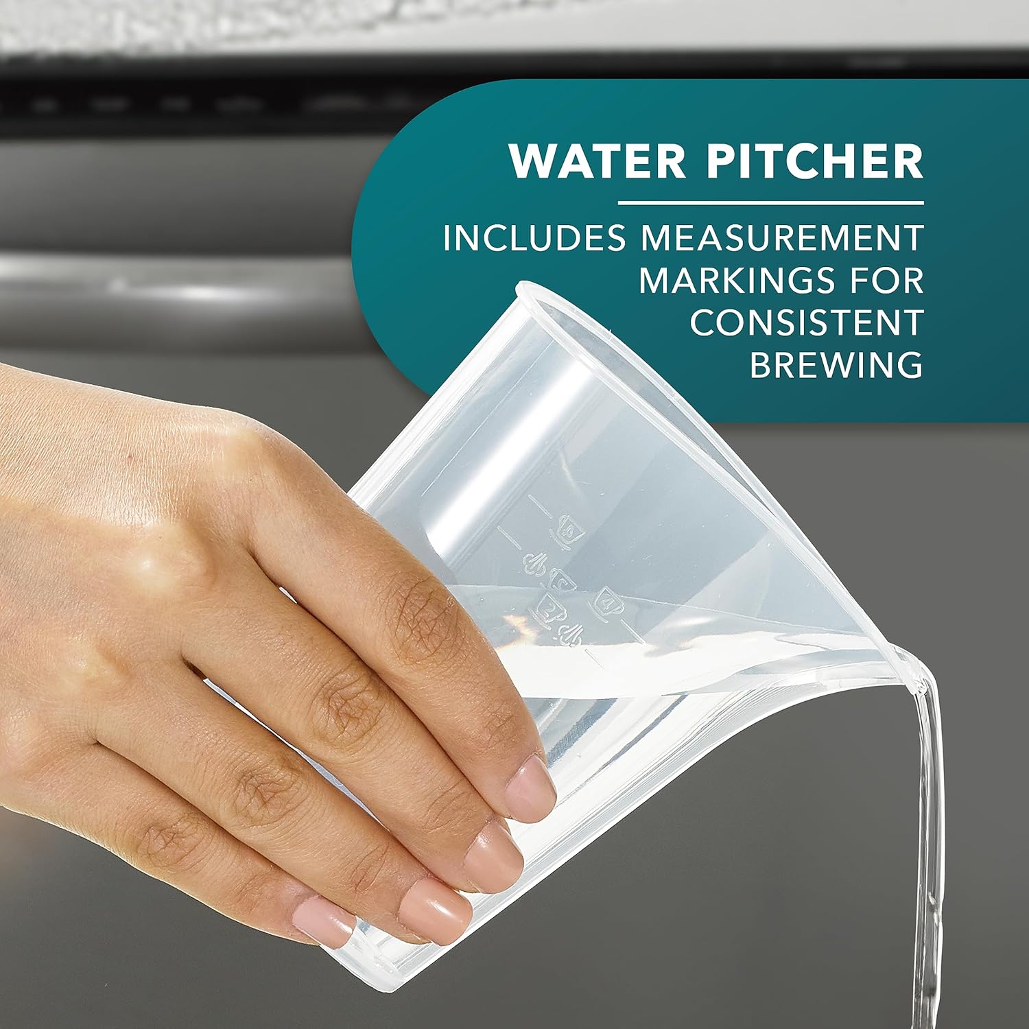 Easy-Measure Water Pitcher: Helps you add the exact water needed for consistent brews.
