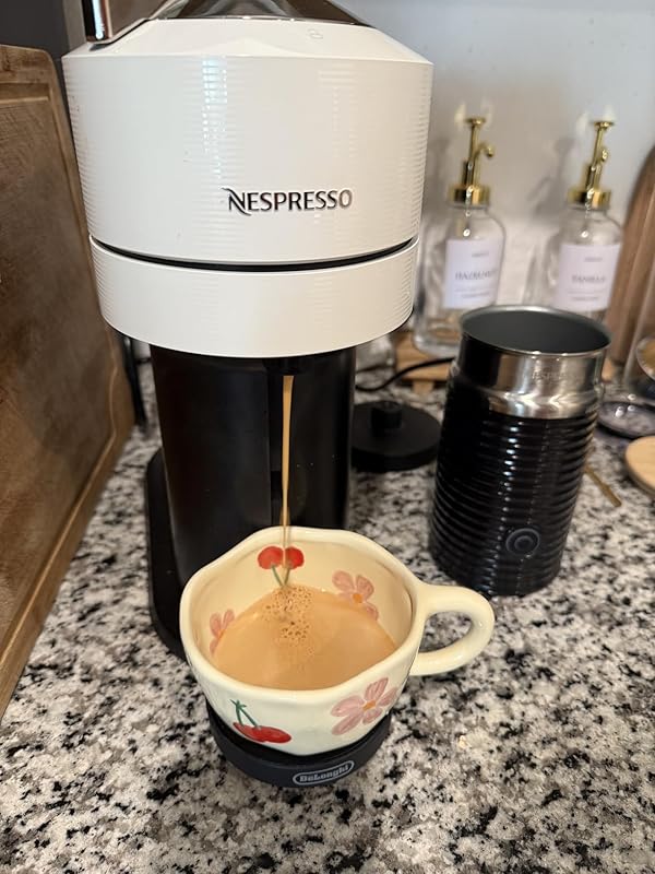 If you’re considering rbe nespresso vertuo enough to be consulting reviews, just BUY IT. My journey towards owning my nespresso started 6 months ago when I first began browsing Amazon for espresso machines. I quickly became overwhelmed at the sheer amount of options, the exorbitant prices of many, and the less than stellar reviews of the options within my initial budget. Without settling on any one in particular, I went back to using my keurig style machine and spending $30 week at Starbucks. September came about and with the busting time of year, schook started and my work as a beautician picked up greatly. I needed espresso and the coffee pids at home weren’t cutting it. I’ll partially blame my 3 year old who learned the phrase “pumpkin loaf” and started demanding a Starbucks trip each morning for the ridiculous amount of money I found myself spending each week. I almost completely stopped using my coffee maker at home.That prime sale we had in early October came about and I once again considered buying an espresso machine. I knew i didn’t want to become a barista… my life is busy and I need simplicity but stellar morning lattees as well. The nespresso was on sale about $50, much closer to my modest $100 budget, and the reviews were the BEST within the under $200 range. It’s easily been the BEST purchase I’ve made all year! It came with a sampler set of some delicious capsules that helped me find some favorites (chiaro and bianco doppio), and i love how fast it produces a delicious double espresso! It’s to die for! The crema is delicious and thick! And the best part is I’ve barely spent any money onStarbucks! I use some steaned oatmilk and a dash of splenda to make my morning lattes and they taste better than what i woukd order from coffee houses and are much healthier and lower in sugar! I’ve bragged about my nespresso to almost everyone i know, and I’m excited to make a cup of yumminess for any of my family and friends who stop by. My morning and afternoon lattees are so easy to make and within no time I’m enjoying delicious pick me up! The machine is unlike anything I’ve used before but extremely simple to get the hang of and start using. There is an app you can download and connect your nespresso to via Bluetooth that can help you with functioning, troubleshooting, brewing and ordering more capsules. They even have recipes on these! I highly recommend this machine and cant believe I went so long without it! If you want a simple system, that’s affordable and produces delicious espresso and coffee beverages, this model is for YOU! It will pay for itself within the first 1.5 months in my case.