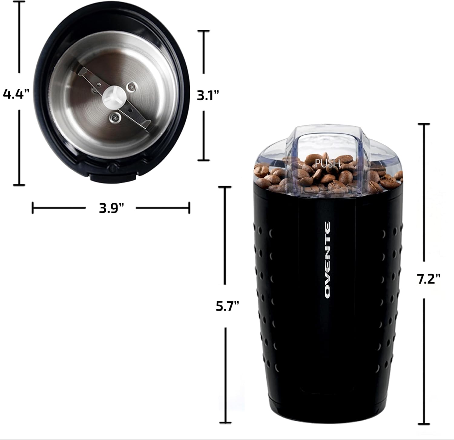 The OVENTE CG225B is a compact yet powerful electric coffee and spice grinder that delivers precision grinding with just the touch of a button. Designed with convenience, efficiency, and versatility in mind, this sleek black appliance is a must-have for coffee lovers and home chefs alike.