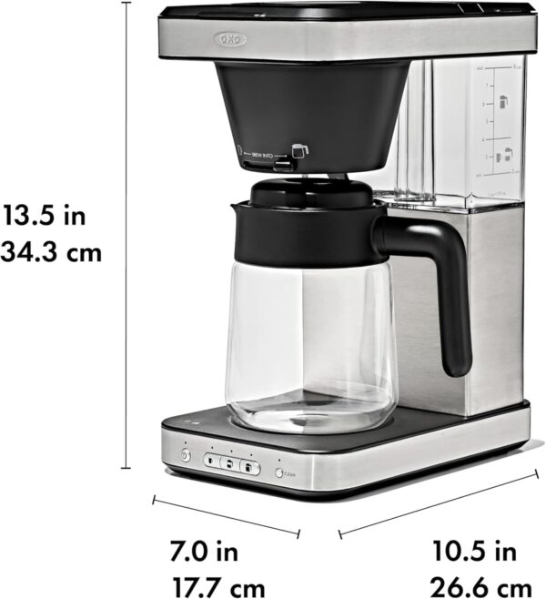Thank you OXO. If anyone is on a search for a 2 to 8 cup coffee maker, w/ little plastic as possible… THIS IS THE ONE. This also worked great for my afternoon Tea. Thank you Amazon for the quick delivery, all went well.As the saying goes, “You Pay For What You Get”