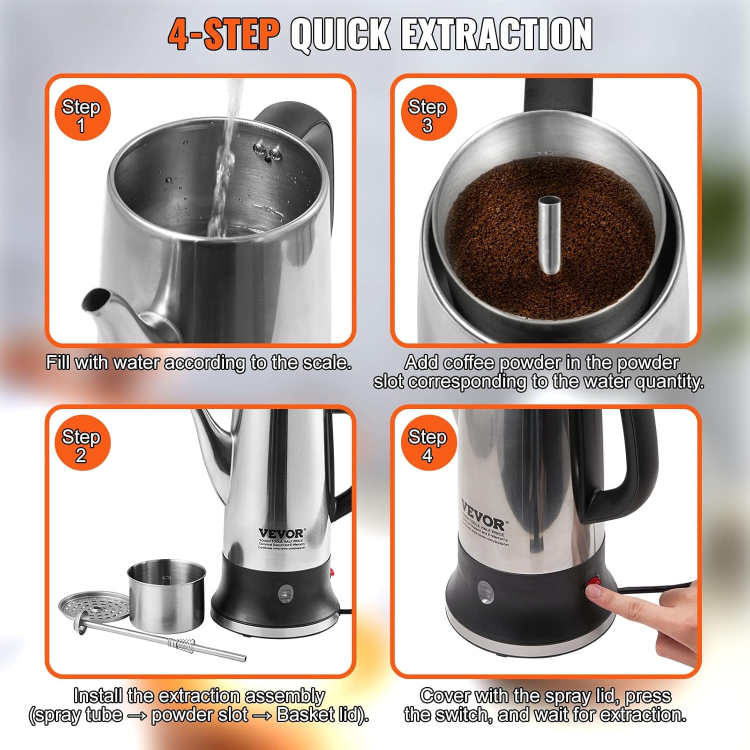 Whether you’re looking for a percolator for daily home brewing, office use, or even light commercial settings, the VEVOR model delivers excellent value at a competitive price.