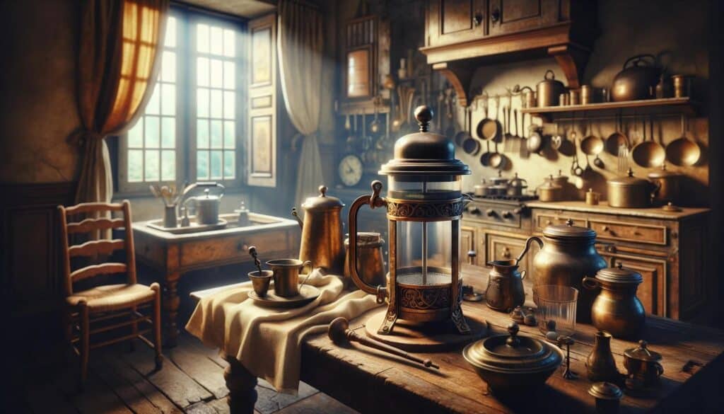 The story of the French Press begins in France during the 19th century. The earliest version was quite rudimentary, involving just a cheesecloth and a rod, used to press grounds at the bottom of a pot of boiling water. The exact origin is a subject of debate, with some stories suggesting that it was accidentally invented by a Frenchman who used a metal screen fitted onto a rod to press his coffee after boiling it.
